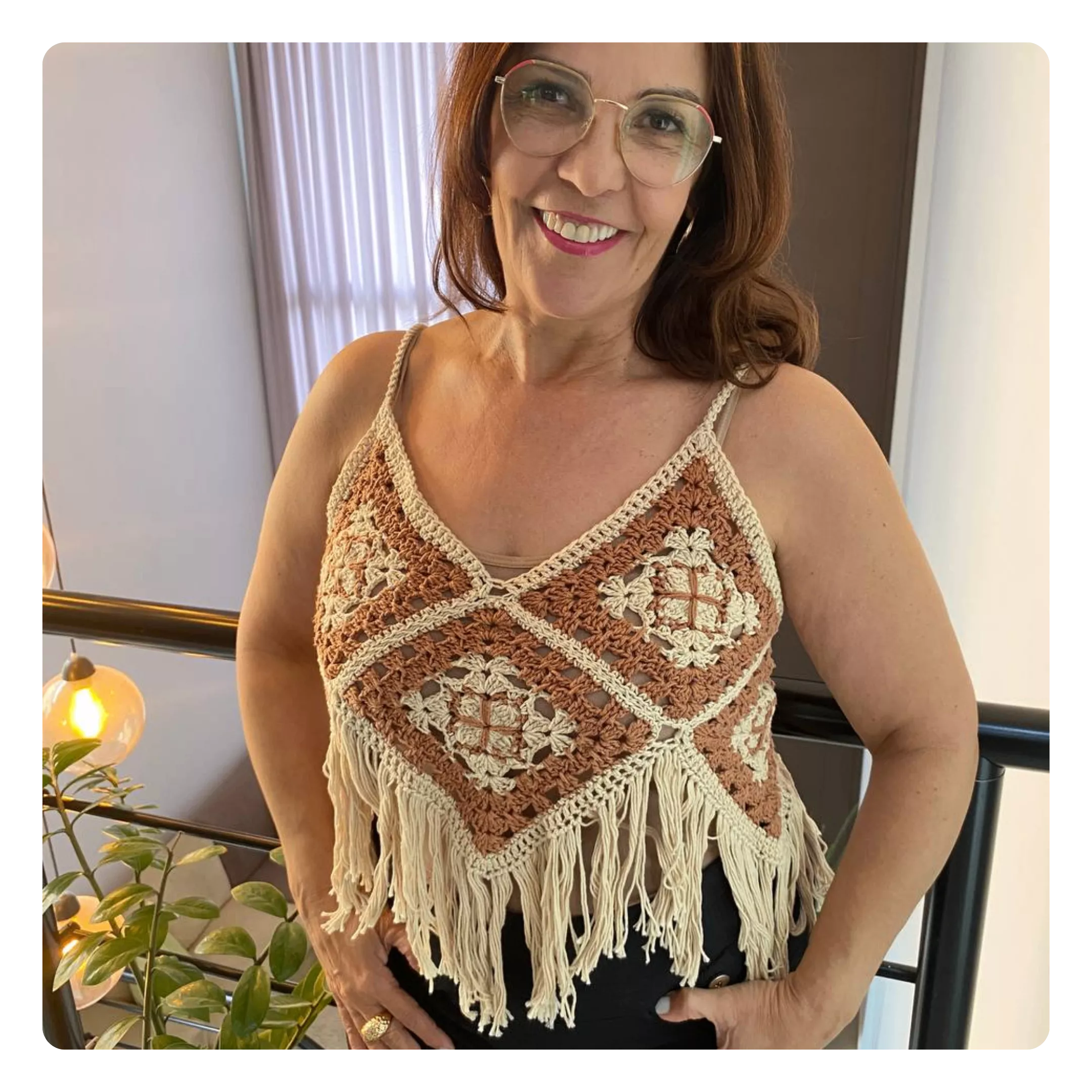 Tenho uma comunidade de mais de 400 mil crocheteiras só no Instagram, compartilhando um objetivo: fazer peças de crochê maravilhosas com acabamento perfeito.